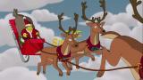 Petit Papa Noël sur une niche volante se fait tirer dessus