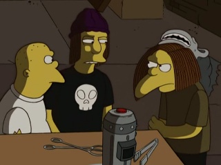 Mouais je n'ai jamais aimé cet épisode, mais maintenant je le trouve même médiocre. Je déteste le comportement des personnages, Lisa car trop sérieuse (eh oh ! elle a 8 ans !), Martin c'est une catastrophe, quand il assomme Bart, ou quand il se "pend" à la fin, ce n'est pas Martin tout simplement. En plus les loubards sont un peu trop exagérés à mon goût, c'est limite ils vont faire sauter l'école. Bart passe encore, j'aime bien la scène où il explore la maison de Jimbo. Homer ne sert pas à grand-chose, c'est histoire de dire qu'il est là (et Moe qui se met une perceuse dans la bouche, urgh !) Marge a un bon rôle à la fin, mais n'apporte quasiment aucun gag. L'histoire générale est assez bonne, l'idée de faire une parodie de 24 heures chrono est bonne mais je trouve que ça ne va pas avec les Simpson, c'est en plus très stressant, on ne peut pas suivre quand l'écran est coupée en quatre (et la plupart du temps ce sont des images répétitives), et ça installe une mauvaise ambiance. J'aime bien la fin avec Bart qui est bloquée par une chaise, et Sideshow Mel qui le voit dans l'eau, le début avec le résumé, Jack Bauer qui dit que ce n'est que Shelbyville qui a explosé, mais rien ne m'a fait vraiment rire. Un des moins bons de la saison.