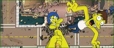 Puis on voyait les Springfieldiens essayer de pénétrer chez les Simpson par une fenêtre en grimpant à l'échelle mais Homer les en empéchait en leur mettant des objets dans la figure.