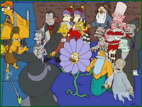 › Parmi la foule de Springfieldiens déguisés on peut apercevoir l'adolescent boutonneux en homme de fer et Jasper en épouvantail.