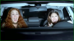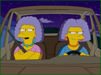› Au volant de l'autre voiture : Patty et Selma qui semblent contentes d'elles / deux jeunes filles effrayées.
