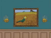 › Quand il arrache la toile de la famille Simpson, Burns révèle une parodie de Christina's World de Andrew Wyeth (1948) cachée en dessous.