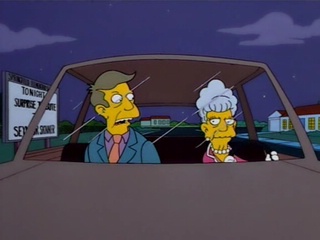 Qu'on en apprenne plus sur le passé de Skinner, oui. Qu'il ait été un loubard, pourquoi pas... d'ailleurs son flashback est un des moments assez réussi de l'épisode. Mais son imposture et en particulier la fin où les scénaristes semblent nous dire "non, vous n'avez rien vu" non, je n'aime pas cette idée. Maintenant, tout n'est pas à jeter, le flashback donc, la scène où la voiture est bondée, et la réplique "sur bien des plans, Springfield est plus sympathique que mon camp de travail en Chine". Moyen.