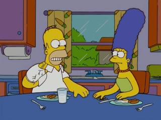 Alors, je voulais prendre quelques jours de pause de la série avant d'entamer la saison 17, mais me revoilà enfin! Pour commencer, je ne dirais pas que l'épisode est entièrement catastrophique, même si il est vraiment faible niveau scénario. Tout le monde l'as dit, Homer et Marge se chicane, Homer fait une bonne action, et tout s'annule, comme ci rien n'était arrivé durant les 30 minutes de l'épisode. Appart cela, ce n'est pas très drôle, mis appart quelques moments qui ont arriver à me faire décrocher un petit sourire. Je dirais aussi que c'est le dernier acte qui rattrape le tout niveau gag, c'est là que j'ai le plus souris. Ce qui m'as fait rire : ( Homer qui joue aux échecs avec la poule, Marge qui sait qu'Homer va lui acheter des fleurs avec des chocolats à moitié manger, Homer qui insulte son cousin, le restaurant "Stupide Willie's", Homer qui dit "On n'as quand même besoin de toi", Bart dans la cage à chien, le Lamentin qui vomit, Homer qui rit parce que son cousin ne sait pas compter et Homer qui recrache le chocolat et le met dans la pile de Marge.) Assez mauvais dans son ensemble, peu de chose sont sauvés, très décevant pour le premier épisode de la saison 17.