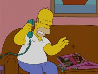 On commence très bien la saison 17 ! Non je déconne. L'histoire est très pauvre. Oh, Homer perd de l'argent, oh, il fait une connerie, oh, il est menacé par la mafia, oh, Marge s'en va, oh, un autre homme menace son couple, oh, Homer fait un geste et tout est oublié... follement original. Les gags sont outranciers, Homer est trop stupide et la tendance va s'aggraver, ou alors ils ont déjà été utilisés. (Les petits coins dehors, "on va tous dire que c'est notre anniversaire..." etc.) J'ai réussi à légèrement rire une fois ou deux comme lorsqu'on voit décidément la tristesse de la vie de Marge, prête à tout avaler quand on lui fait un compliment (au moment où elle demande à Homer pourquoi il est blessé à la main). Mais c'est un épisode mauvais, tout simplement.