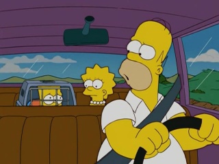 Bienvenue dans la saison 17... ben merci du cadeau ! Ça faisait 5 ans qu'ils commençaient chaque saison par un horror show, et quand ils décident de nous servir un épisode classique, on a cet étron intergalactique ! S'il est mauvais ce n'est pas parce qu'il part dans tous les sens comme certains épisodes, ça reste assez classique dans la forme... trop classique en fait. On a déjà vu ça 58 fois. Homer fait une bêtise, Marge est furieuse, Homer fait un truc mignon pour la reconquérir, Marge le pardonne. A aucun moment l'épisode n'est drôle. Même la mafia en début d'épisode ne parvient pas à remonter un tant soit peu le niveau... c'est dire ! S'ensuit un passage au village du père Noël qui aurait pu être drôle, mais non... Ensuite l'utilité du passage chez les cousins m'échappe... Même quand ils essaient de faire des gags ils les recyclent et se plantent (Homer qui confond la cabane avec des toilettes)... et je ne parle même pas de cette scène finale avec Burns qui sort de nulle part et n'est ni intéressante ni drôle. Et sinon, le nouveau personnage Caleb brille par sa euh... sa présence, je n'ai absolument rien à dire sur lui, il est complétement inintéressant. Quelque gags qui m'ont fait très légèrement esquisser un sourire :