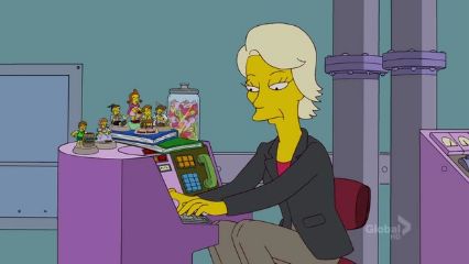 Tout ce que j'aime: Peu d'histoires parallèles mais toutes aussi développées l'une que l'autre, des geeks, le Professeur Frink, une Guest Star dans un autre rôle que le sien (ce qui m'énerve quand ça arrive car arrivant toujours comme un cheveu sur la soupe, sans blague les gars ont rien d'autre à faire que de passer dans cette petite ville et croiser comme par hasard les héros de la série? Ou bien seraient-t-elles aussi sympa dans la vraie vie quoi? PU...REE! Je hais les guest stars dans leur propre rôle... A part Weird Al... Il est cool. Ave Lui) bref, le bonheur. On dira que je ris facilement... peut être que j'avais encore le symptôme "mauvais Halloween" et que cet épisode m'a rassuré.