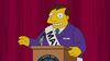 L'épisode se défendait bien au début, même si refaire allusion au monorail entraîne un peu trop de too much à mon goût (j'ai rien contre la référence en soi, mais les gags qu'entraînent la destruction du parc, bof, d'autant que c'était pas nécessaire de tuer Kobb), j'ai apprécié suivre l'intrigue de Marge en concurrence pour devenir maire. Rien de neuf, mais pas toujours aussi prévisible que je le pensais, j'aime beaucoup d'ailleurs le fait que Marge obtienne un petit écart de victoire face à Quimby, ça change de la grosse popularité facile, et c'est bien accentué avec le "Is that enough ?" d'Homer. Je suis moins emballé par la suite en revanche, déjà par la stupidité d'Homer un peu trop poussée même pour les besoins de l'intrigue, d'autant que le coup du harpon est pas drôle. D'ailleurs, je regrette que les affrontements entre Bart et Homer prennent une tournure aussi exagérée depuis quelques temps. L'intrigue devient moins intéressante et se conclut de façon faiblarde. C'est dommage, parce que ça partait plutôt bien, et dans l'ensemble, quelques répliques et gags m'ont bien fait marrer (et ce même si pas mal sentent le recyclé). Correct, mais ça pouvait être meilleur.