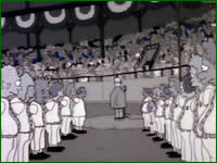 › Un joueur vient lui faire une dernière accolade. Dans les Simpson ce joueur ressemble étrangement à Babe Ruth, un célèbre joueur des Yankees dans les années 20.